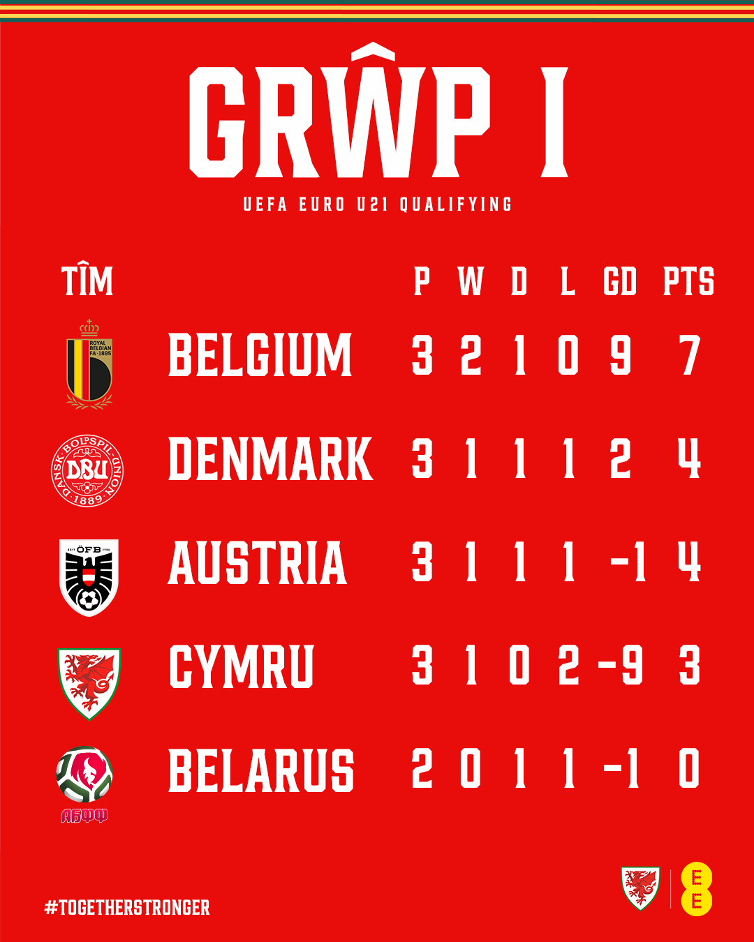 Here is how Group I stands as Cymru go into their final EURO qualifier of the year.