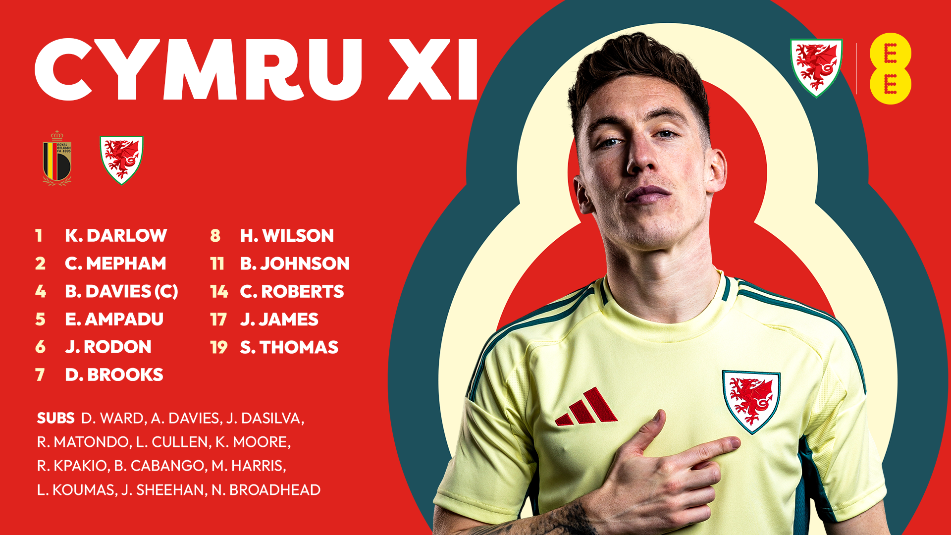 Jérémy Doku was a constant threat in the opening half and added a third on 27 minutes when he scored a fine individual goal. The pace of Brennan Johnson did cause problems for Belgium and there were chances for David Brooks and Ben Davies, but a late penalty for Cymru offers hope for the 2nd half.