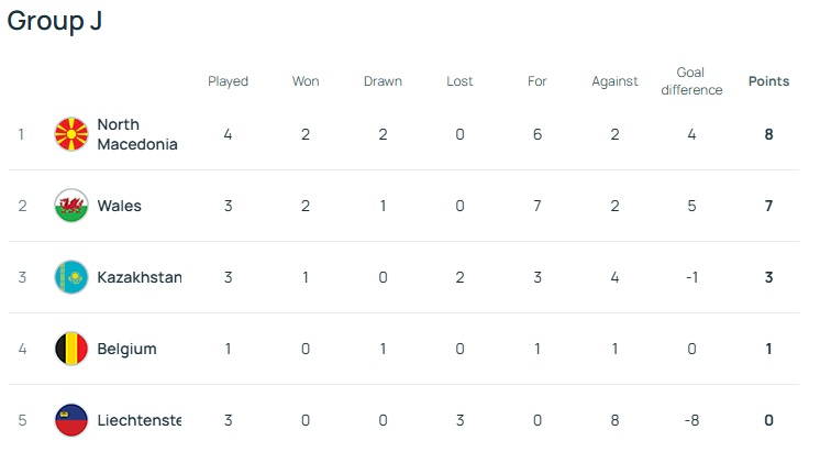Cymru currently lead Group J by two points and have a six point lead over Belgium who started their campaign with a 1-1 draw against North Macedonia in Skopje on Friday.