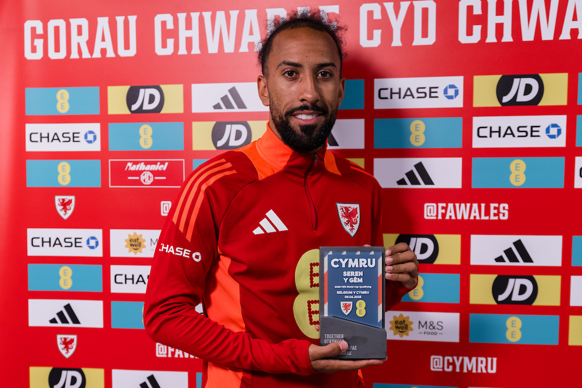 Following a wonderful performance and after scoring his first goal for Cymru, Sorba Thomas was voted the EE Player of the Match.