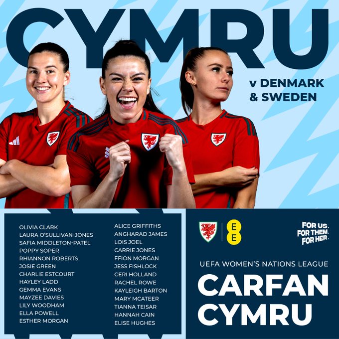 Rachel Rowe returns to the squad after injury together with Tianna Teisar and Poppy Soper, while Mared Griffiths and Scarlett Hill will represent the Cymru WU19 team in their upcoming UEFA qualifiers.