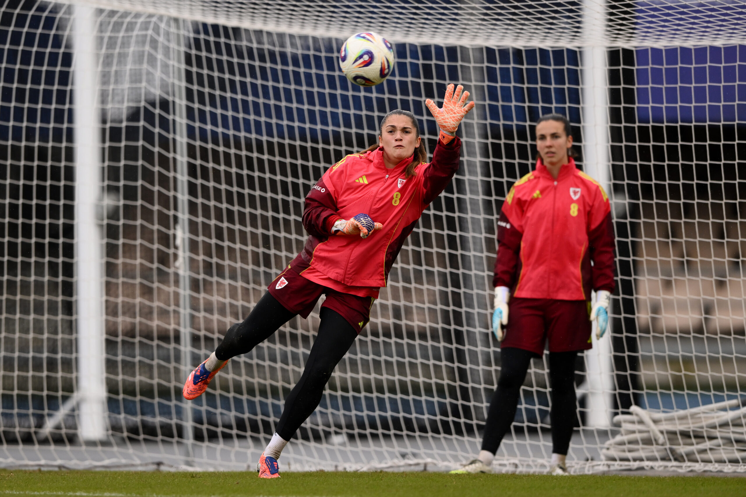 Safia Middleton-Patel in action during Cymru’s pre-match warm-up.