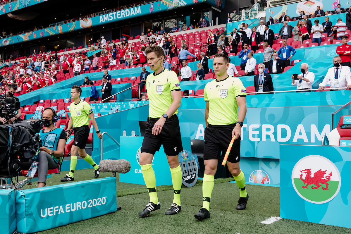 Daniel Siebert will take charge of the match between Cymru and Belgium on Monday night. The 41-year-old from Germany was the man in the middle when Cymru played Denmark in the Round of 16 at UEFA EURO 2020 (below).