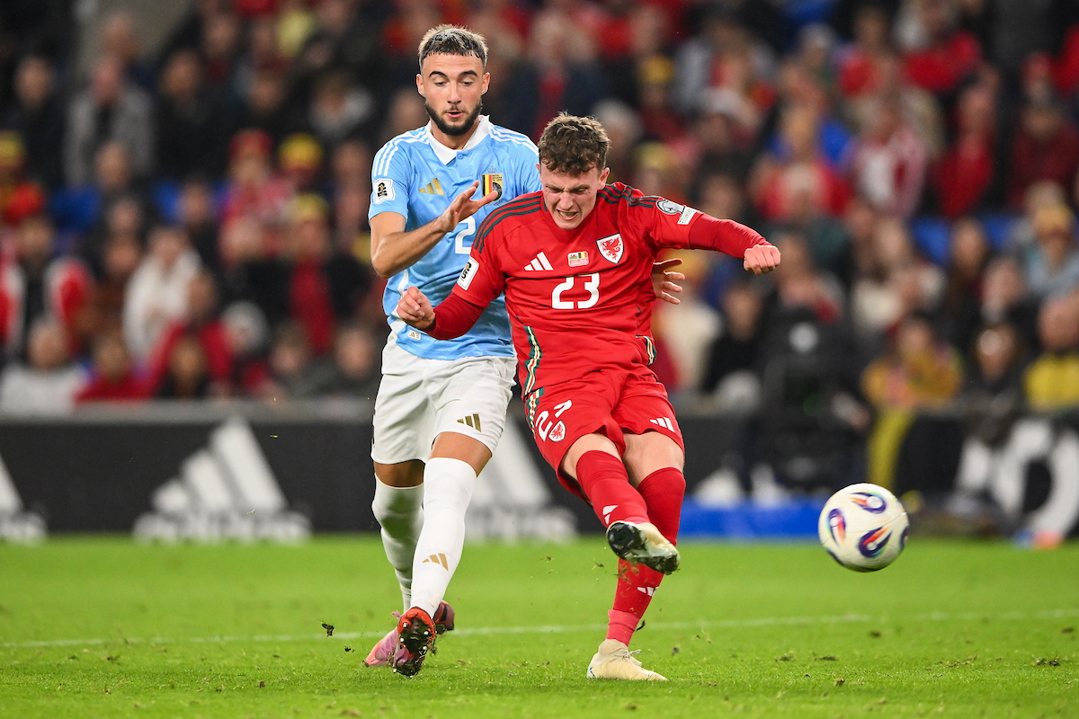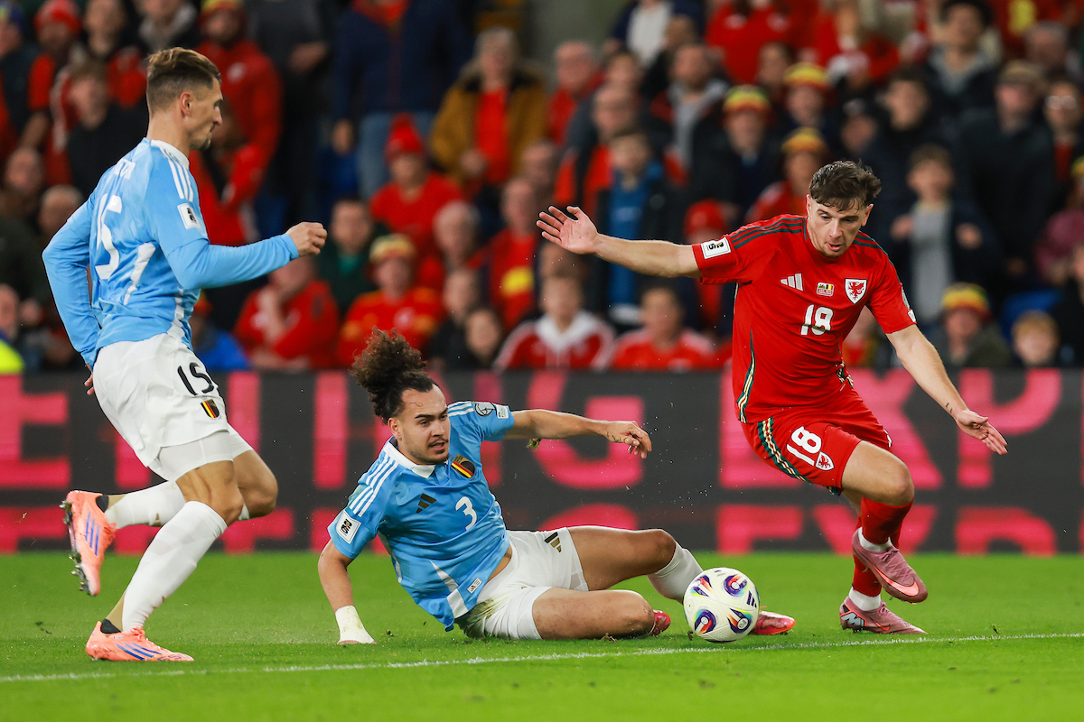 A highly entertaining first half at the Cardiff City Stadium where Cymru took the lead when Joe Rodon headed in from a corner kick as The Red Wall erupted. Belgium equalised when Charles De Ketelaere kicked the ball into Ampadu’s arm in the box. Following a VAR review, the referee awarded a penalty that Kevin De Bruyne scored from. Moments later, Belgium completely turned the game around when a long ball forward was picked up by Jeremy Doku. After cutting inside, he set-up Thomas Meunier to score and make it 1-2. Cymru had chances to equalise themselves with Jordan James drawing a fine save from Thibaut Courtois.