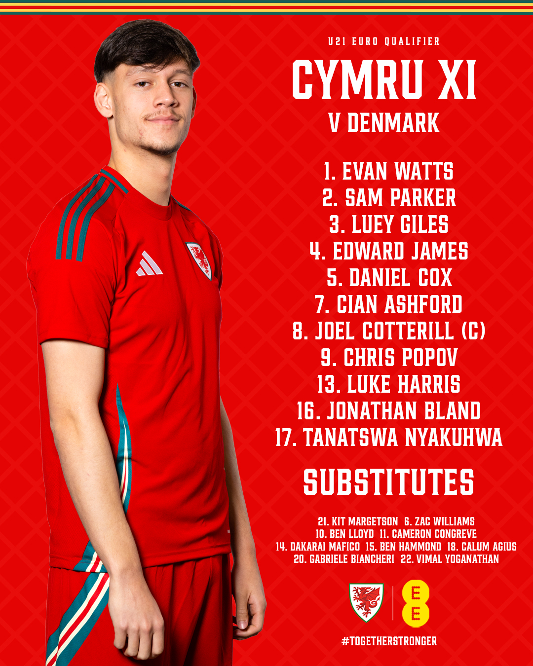 Matty Jones has announced his Cymru U21 squad for their opening 2027 UEFA U21 EURO qualifier against Denmark.