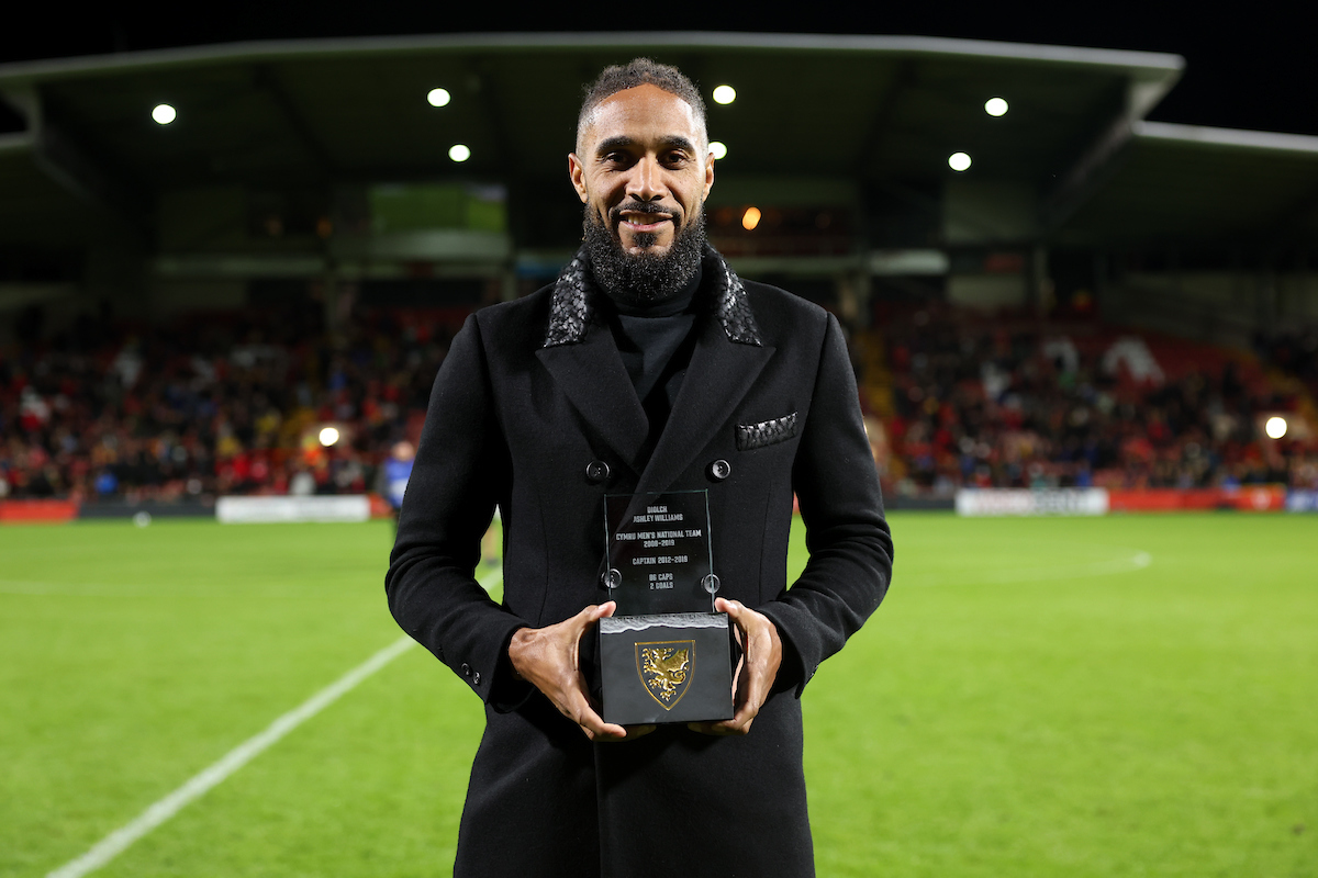 At half-time, former Cymru captain Ashley Williams was honoured for his services, providing him with an opportunity to thank The Red Wall for the support they’d shown him through his international career.