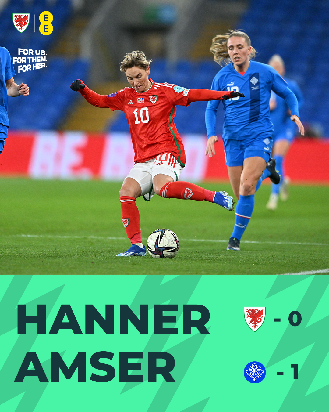 Grainger’s charges pressed for an equaliser, but their efforts were quashed when, with 12 minutes remaining, Dilja Zomers rocketed an effort past Clark in the Cymru goal to double Iceland’s advantage.