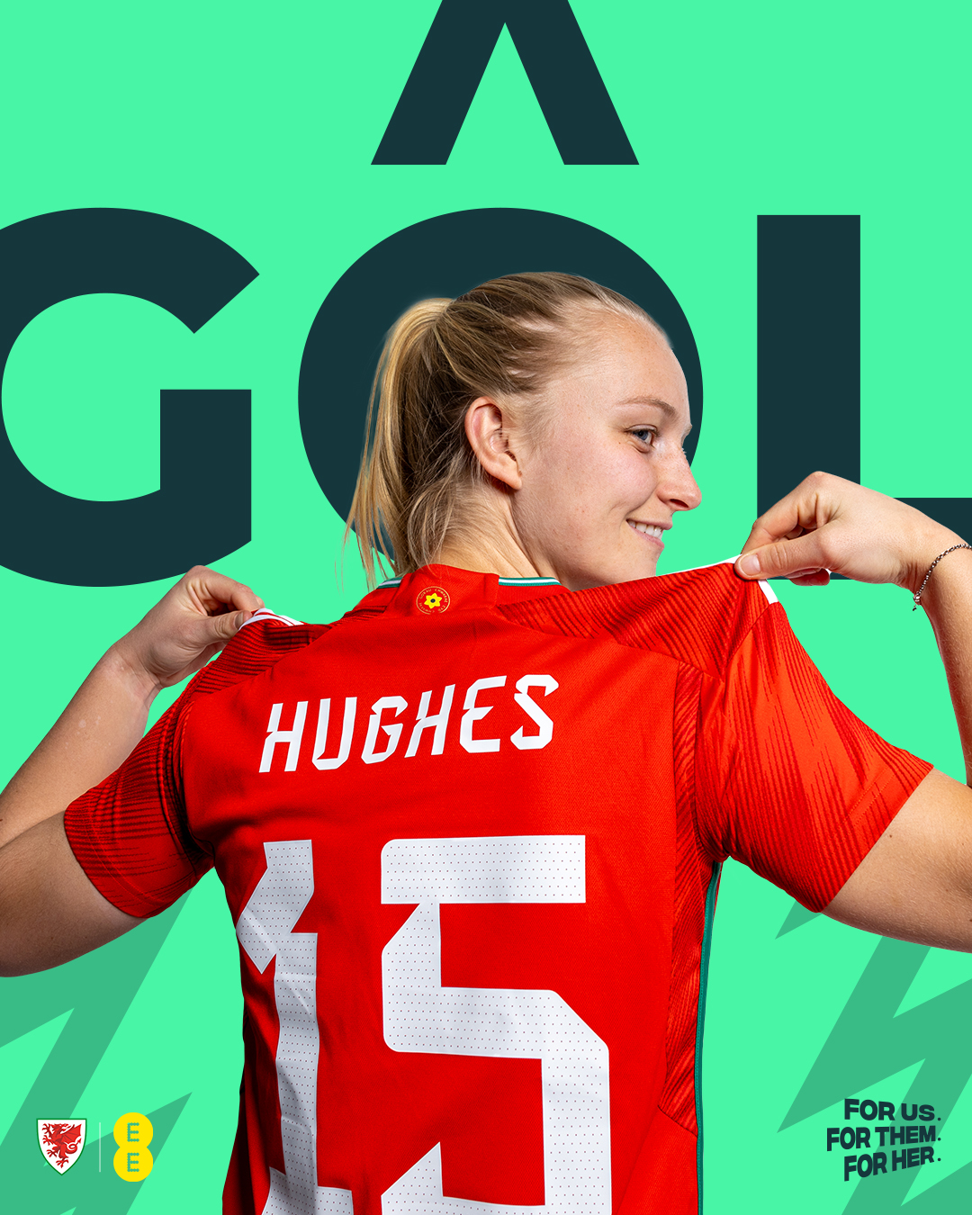 Gôl! Woodham finds Hughes and she heads home to grab one back for Cymru!!