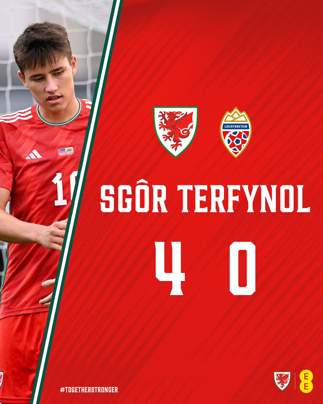 Owen Beck sends a lovely cross into the box from the left and Josh Thomas meets the ball at the front post to prod in a fourth for Cymru.
