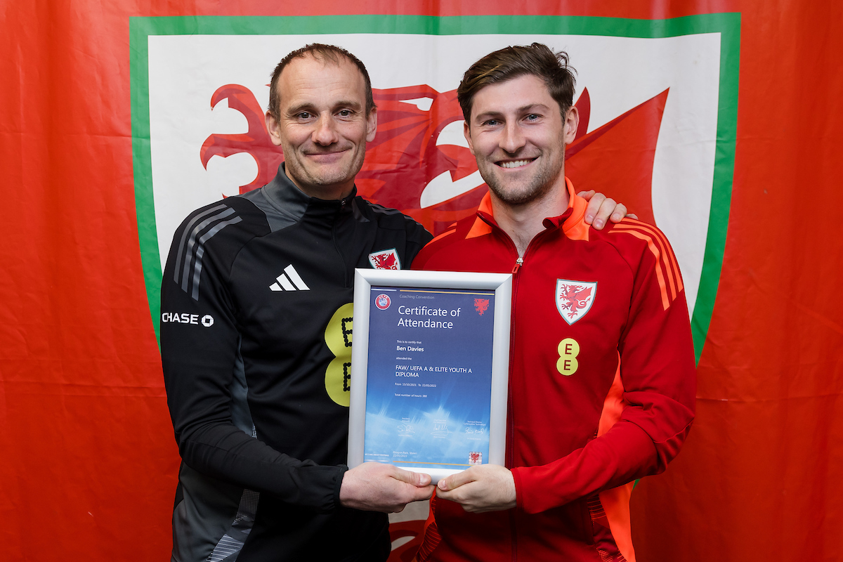 Prior to today’s game, Ben Davies has received his certificate for completing his UEFA A Licence. Is he on his way to being a future Cymru manager?!