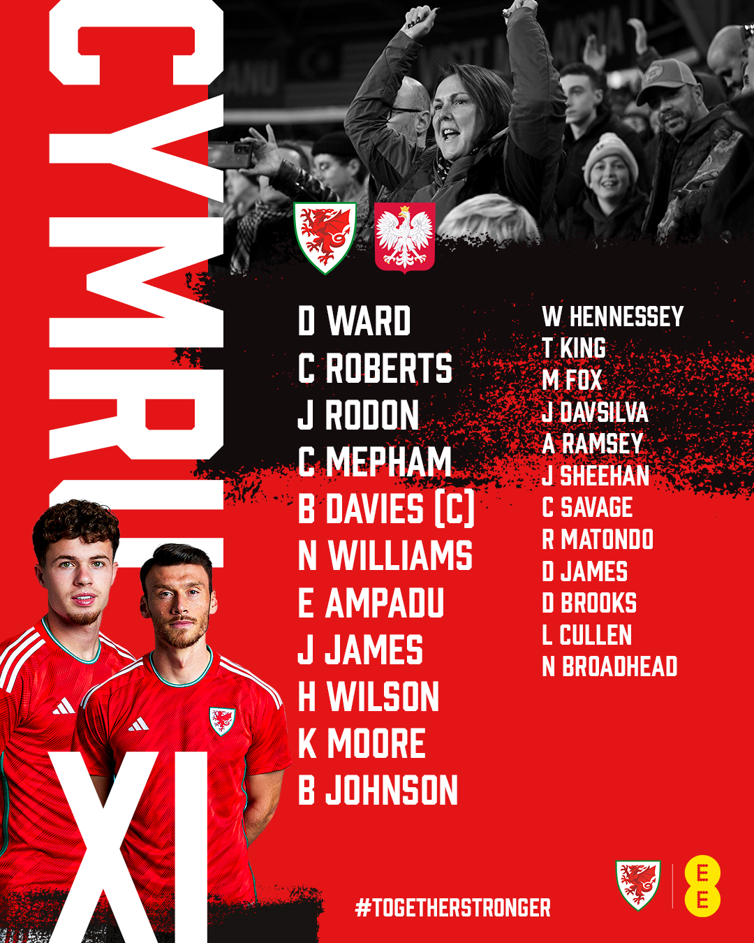 🏴 There’s one change for Cymru from the win over Finland as Kieffer Moore is in for David Brooks.