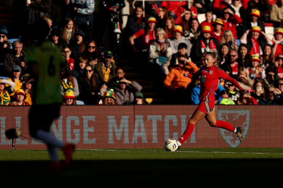 The crowd of 11,173 set a new record for a Cymru home women’s international friendly as the Red Wall came out to celebrate the careers of Jess Fishlock and Kayleigh Barton. The match also saw Gwen Zimmerman, Scarlett Hill and Tianna Teisar make their senior debuts.