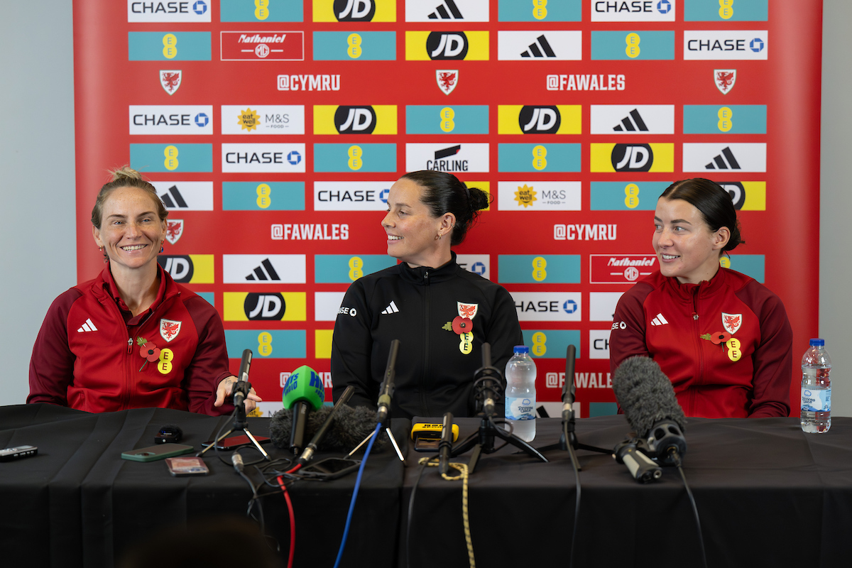 Cymru captain Angharad James, Jess Fishlock and head coach Rhian Wilkinson all sat down with the media on Monday afternoon to discuss the challenge ahead.