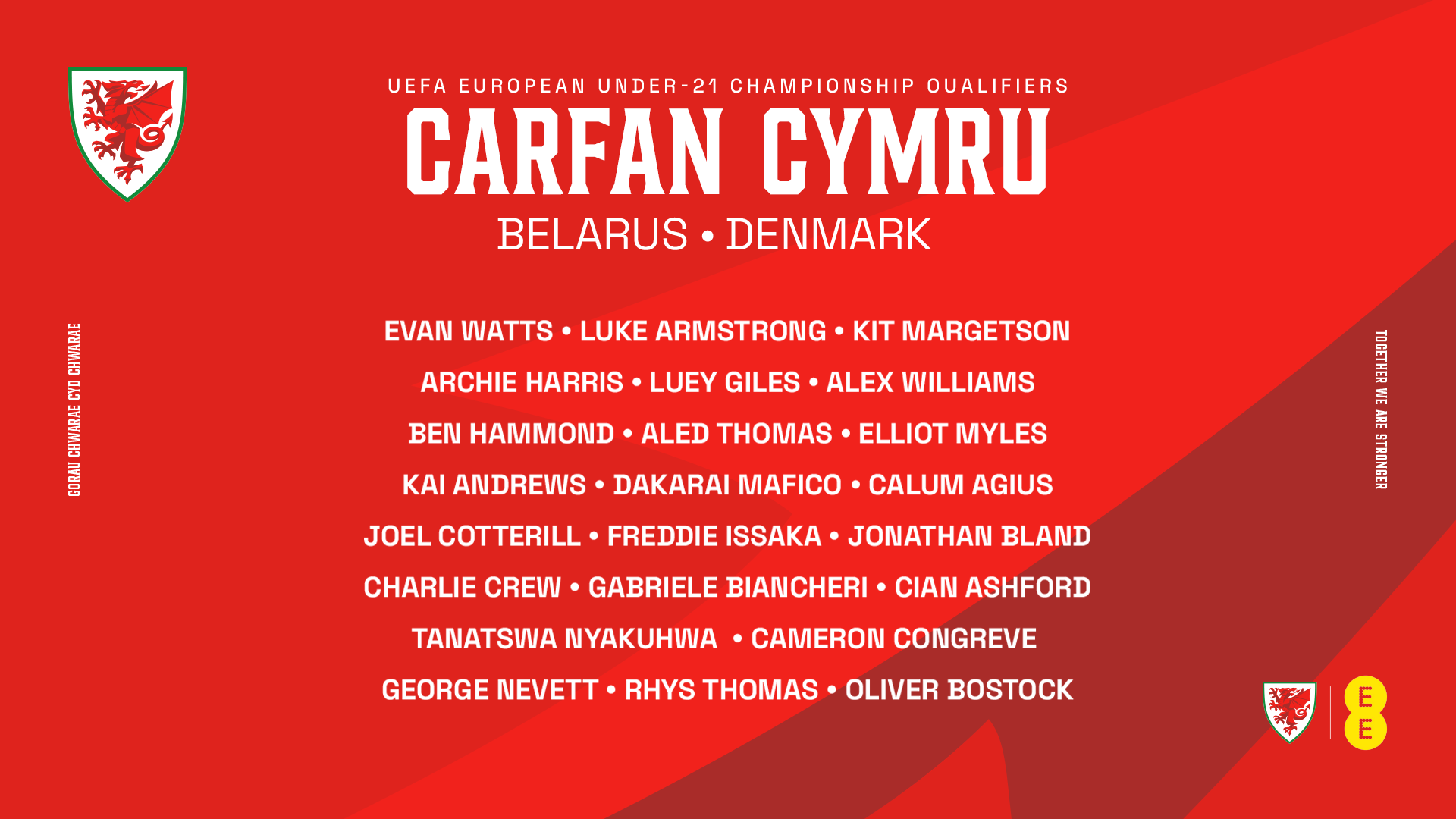Matty Jones has announced his 23-player Cymru squad for the upcoming UEFA U21 EURO 2027 qualifiers against Belarus and Denmark in Group I.
