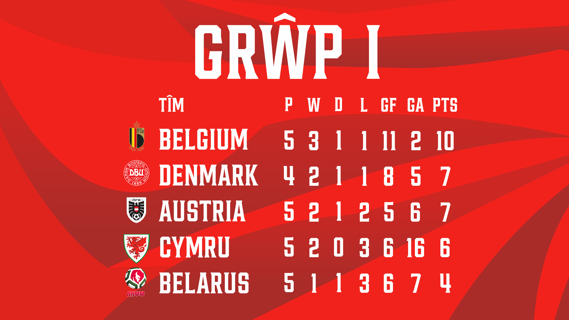 Here is how Group I stands as Cymru go into their second game of the March international window.