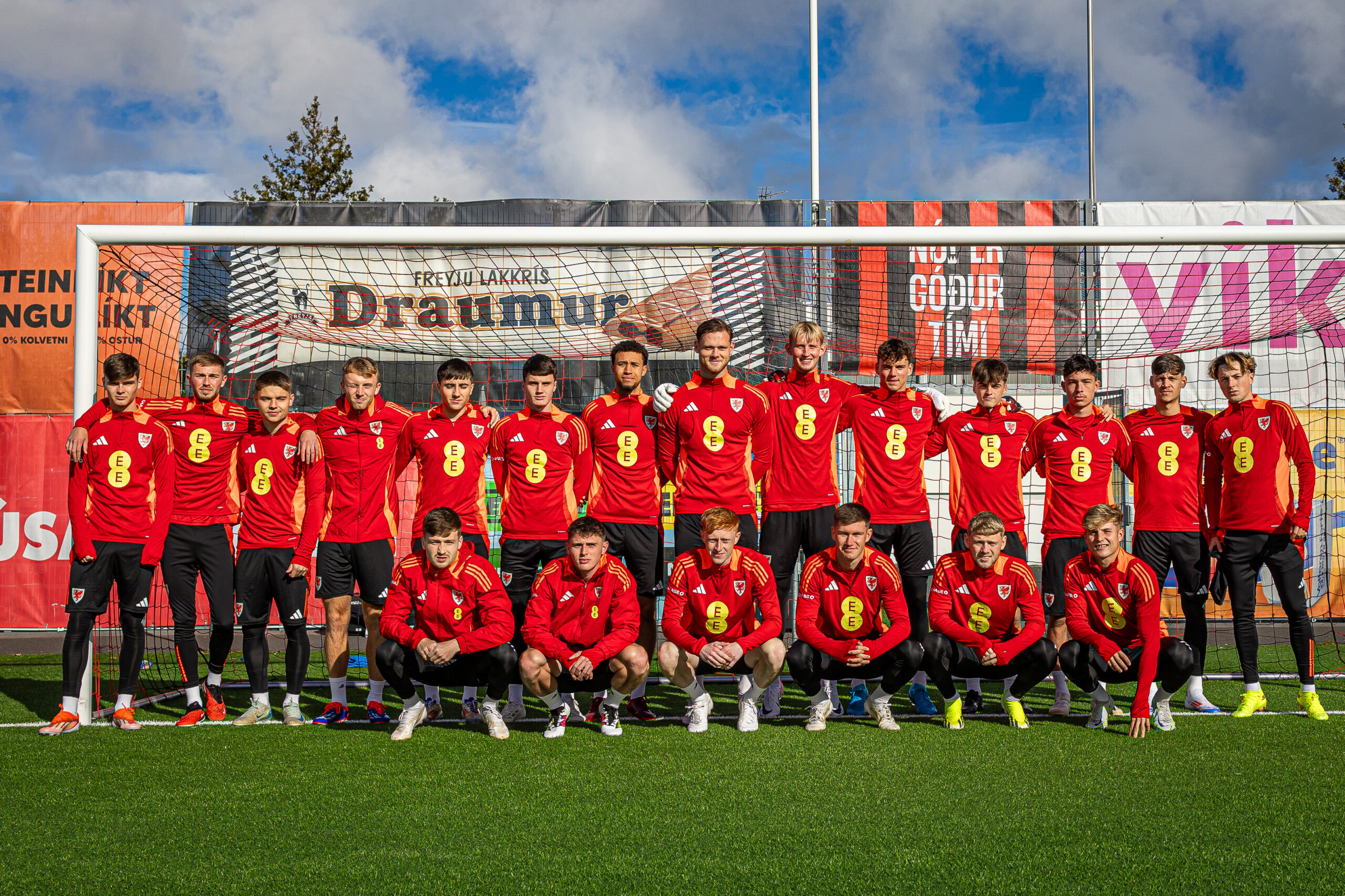 The Cymru U21 squad at Víkingsvöllur ahead of Tuesday’s qualifier 📸