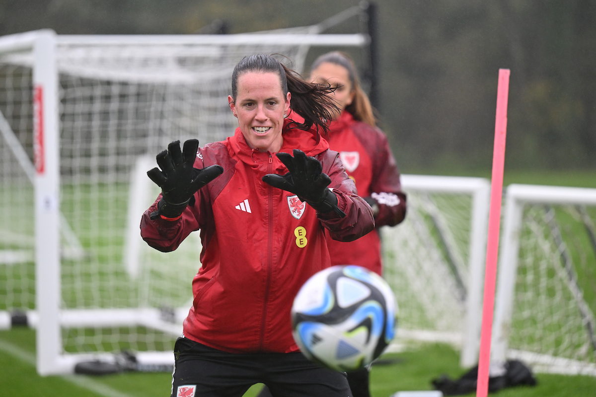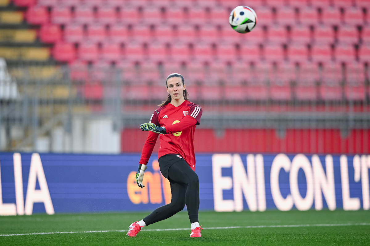Cymru goalkeeper Olivia Clark goes through her pre-match routine.