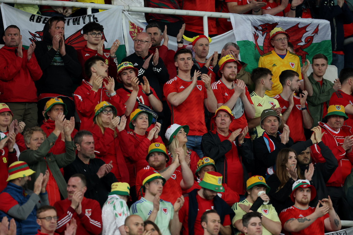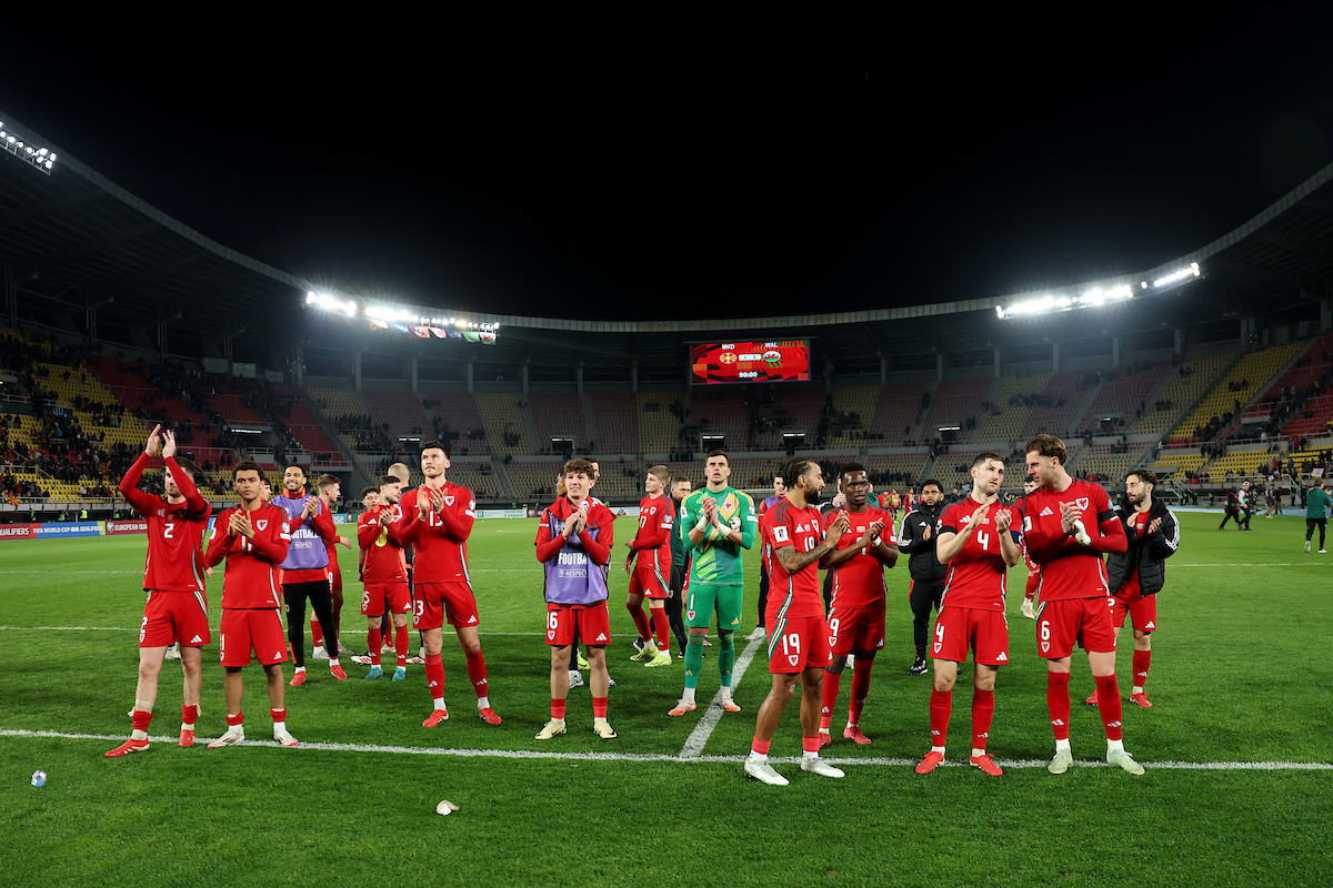 The Cymru players join the traveling fans in Skopje following the 1-1 draw.