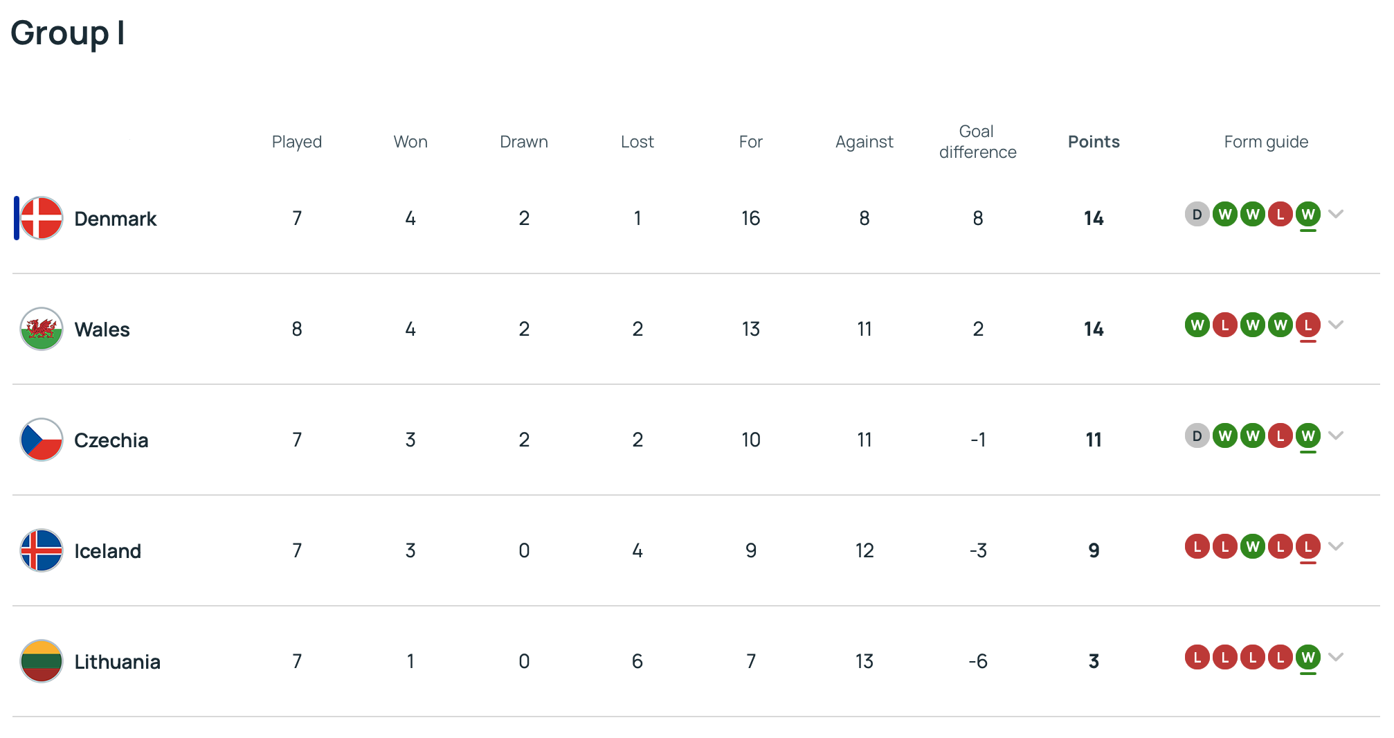 Meanwhile, at the same time, Czechia were playing their final qualification match against Lithuania and their 3-0 win saw them leapfrog Cymru into the EURO play-offs.