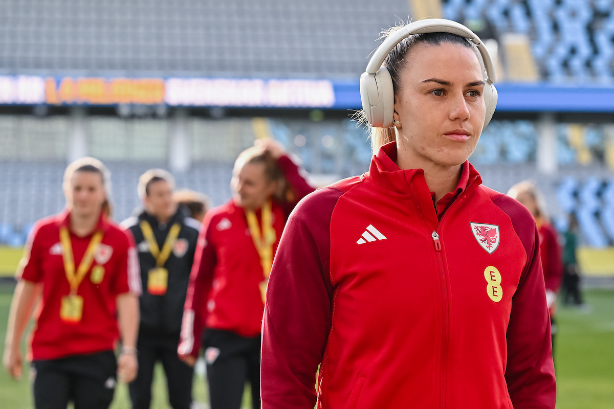 All smiles from Elise Hughes. The Cymru striker returned to the squad at the start of this Nations League campaign following a lengthy time out through injury. This will be her first start since her return.
