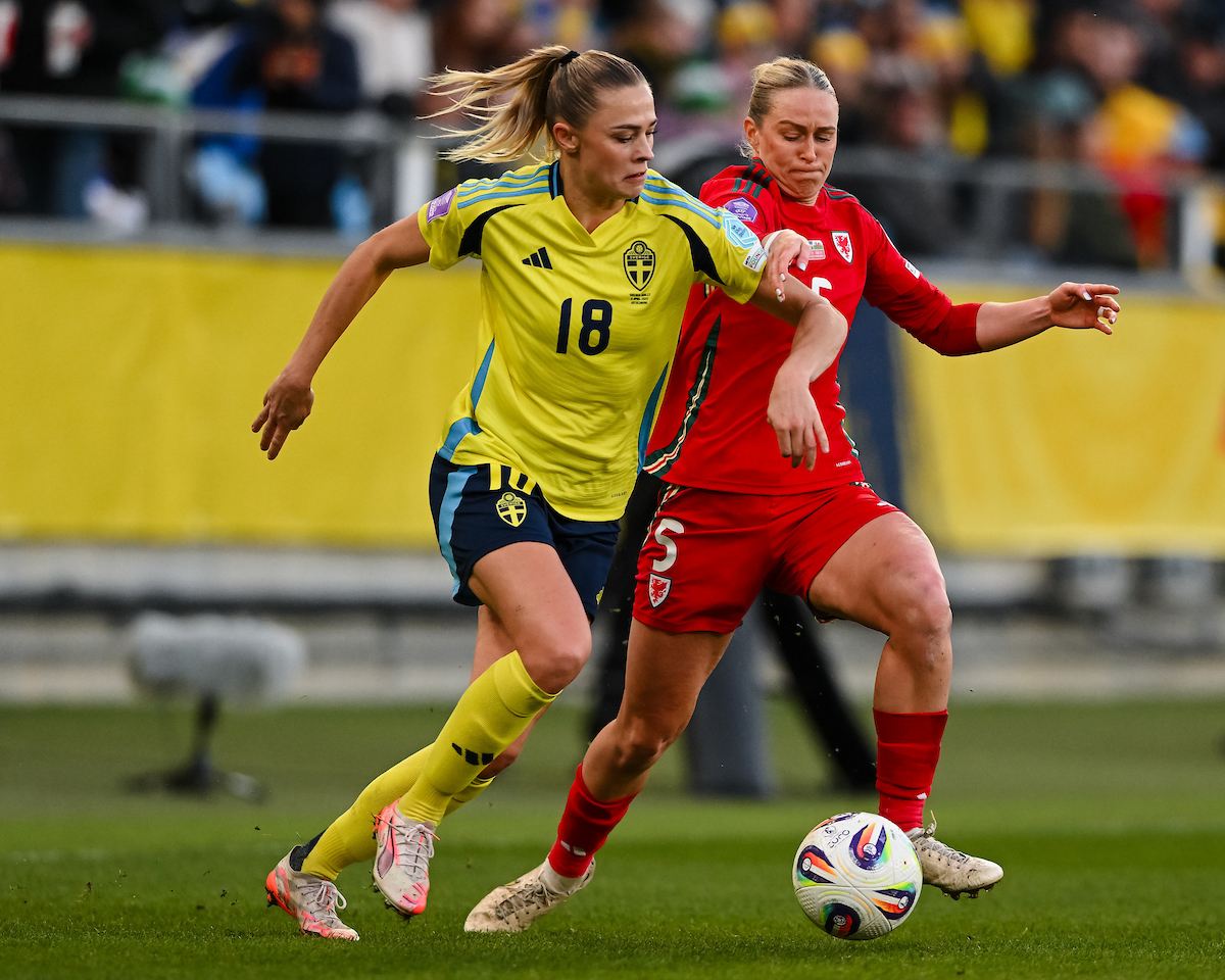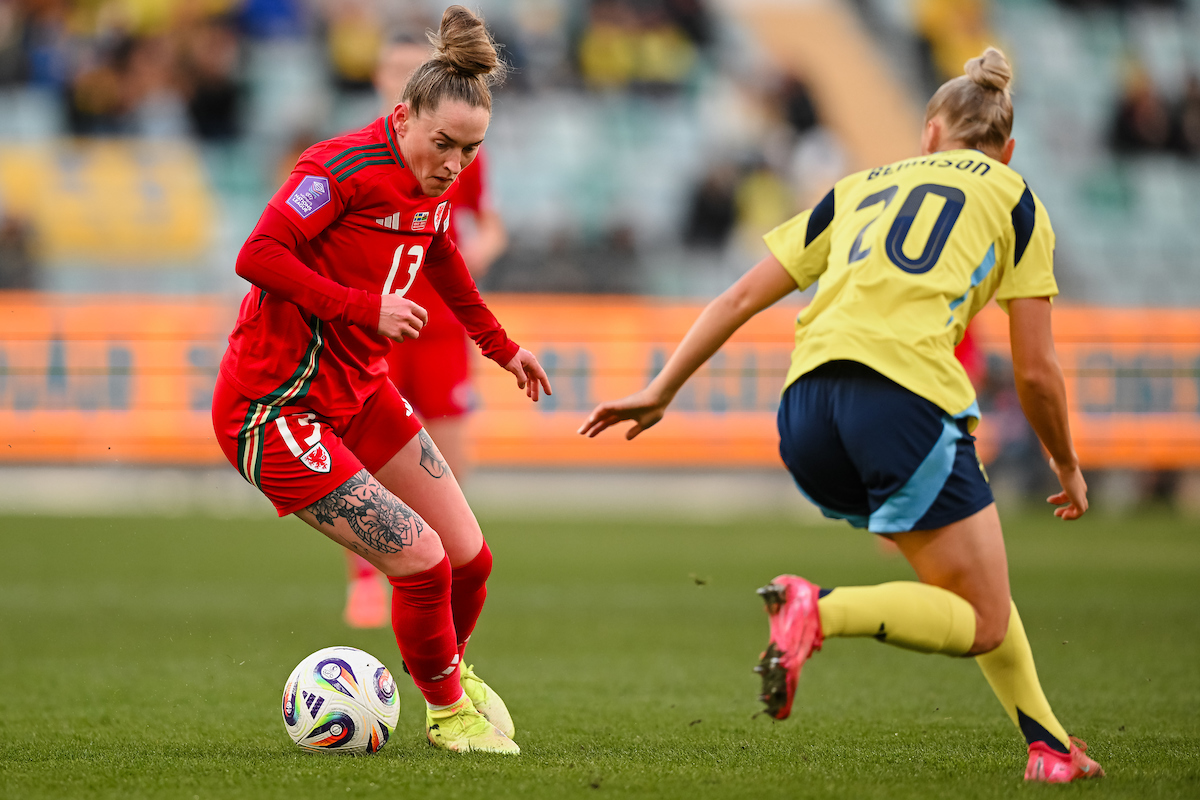 Esther Morgan made a welcome to the team and proved to be a valuable attacking threat for Cymru, while Carrie Jones also got behind the Swedish defence on occasion but the side could not create chances of any real quality. Sweden were dominant throughout the opening half with Fridolina Rolfo, Johanna Rytting Kaneryd and Filippa Angeldahl all coming close, but the Cymru defence stood firm.