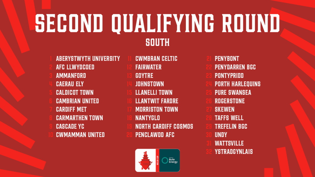 The Bute Energy Welsh Cup Second Qualifying Round draw will be broadcast on RedWall+ at 8pm on Thursday 25 September.