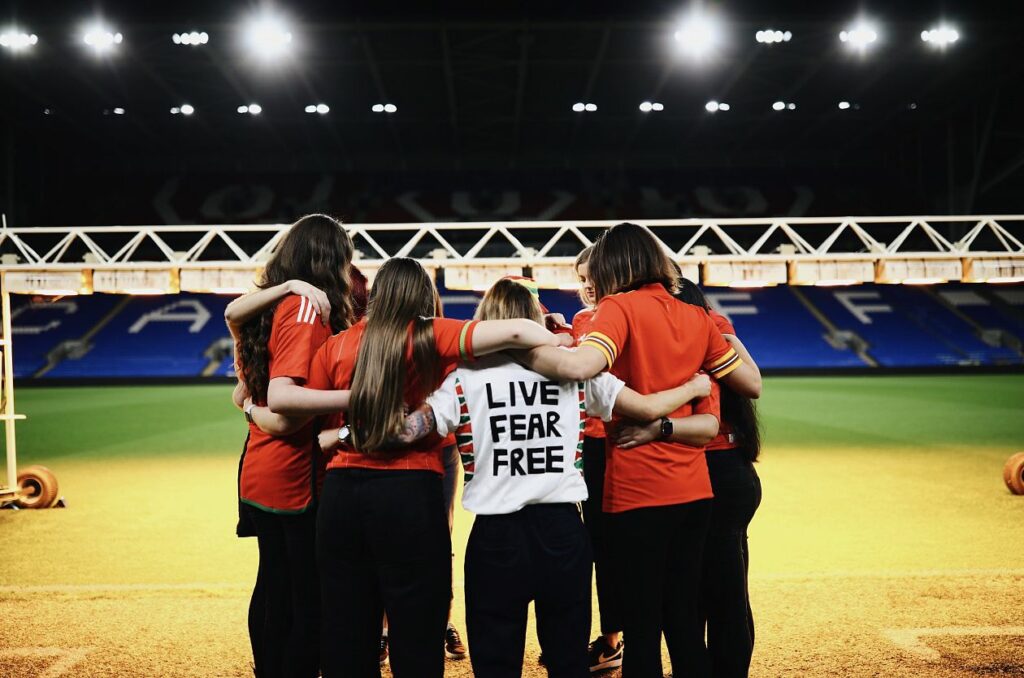I nodi Diwrnod y Rhuban Gwyn 2022, mae ‘Wal Goch’ Cymru wedi ymuno â llinell gymorth Byw Heb Ofn a Chymdeithas Bêl-droed Cymru i anfon neges glir i’r byd – rydym yn chwythu’r chwiban olaf ar drais yn erbyn menywod.