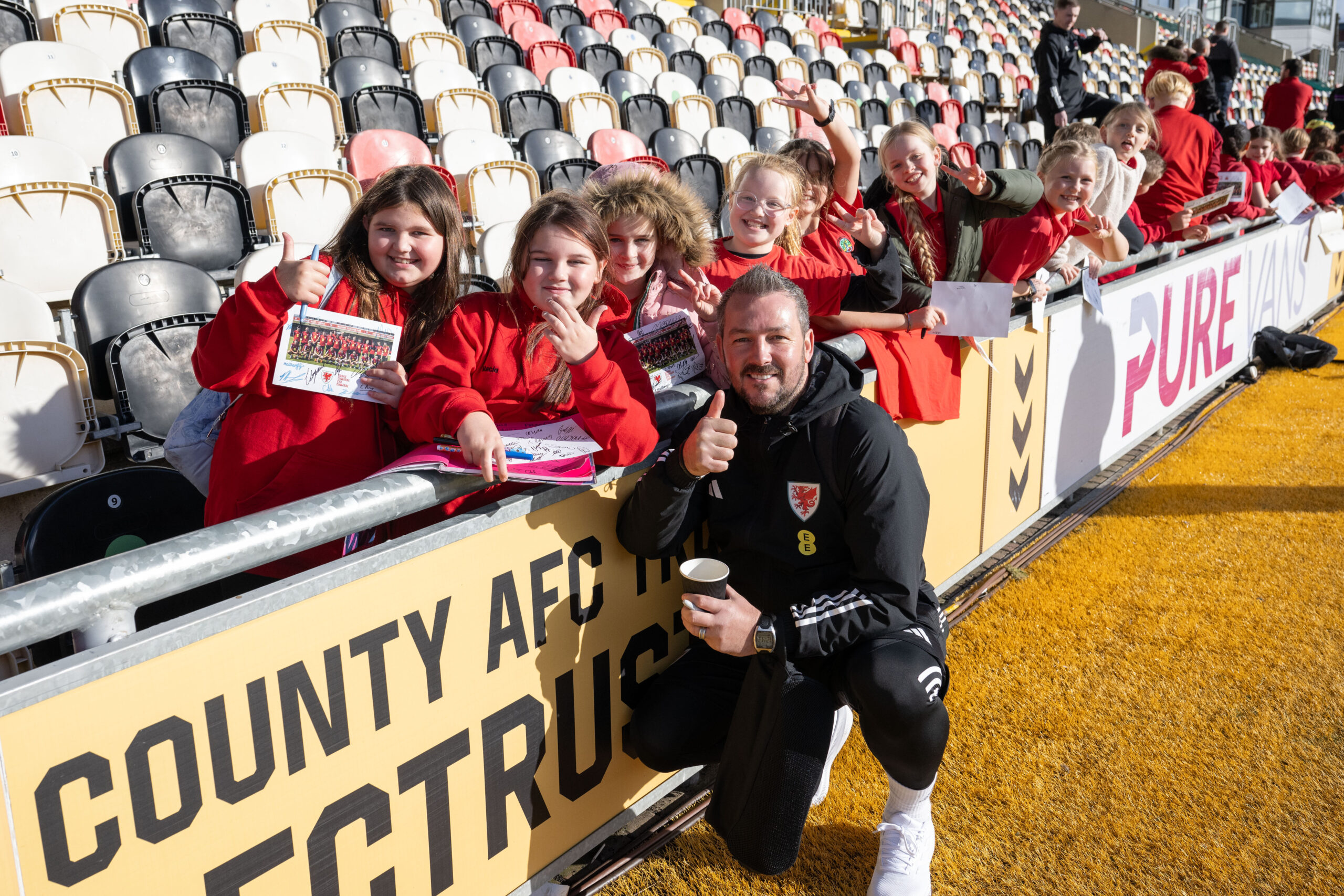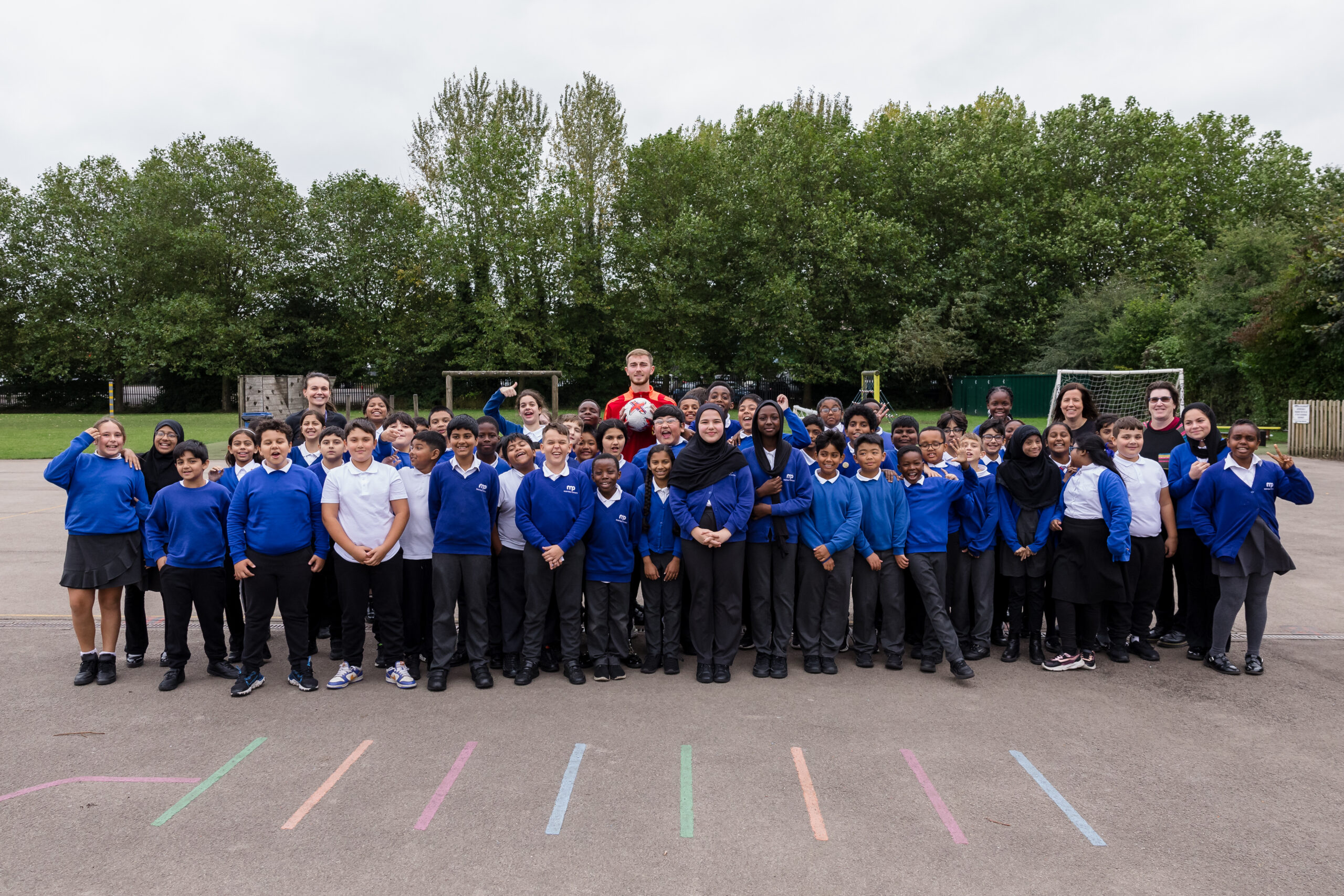 Cymru U21 defender Matt Baker visits Maindee Primary School ahead of final qualifier