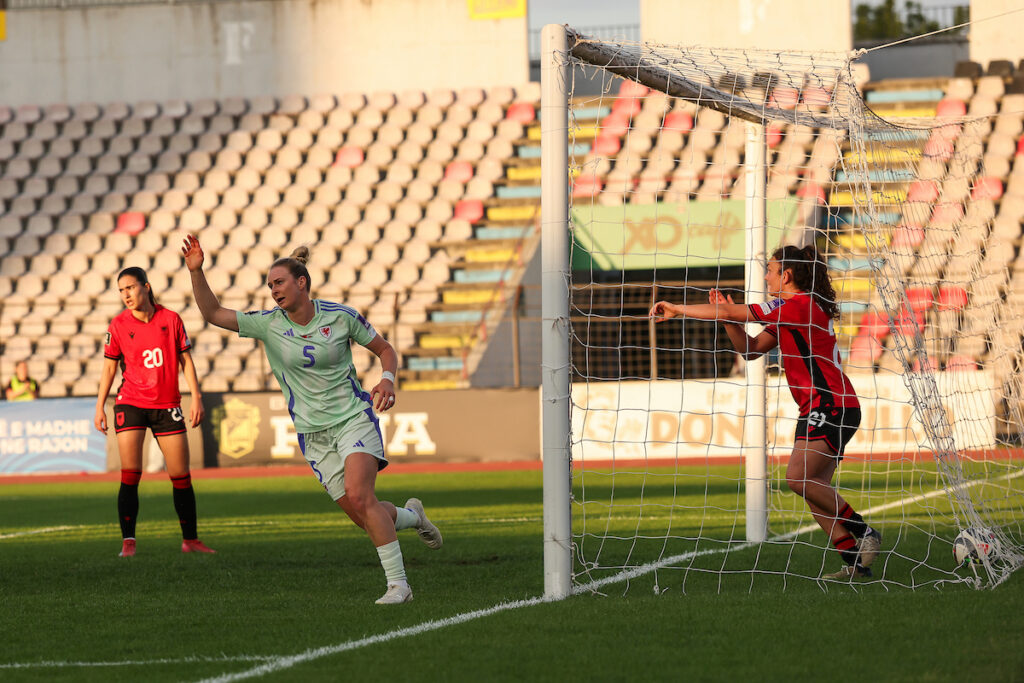 Sophie Ingle captained the side on her 150th senior international appearance and was denied a goal by the flag of the assistant referee just before half-time, while Mared Griffiths almost doubled the advantage in added time, but her effort went narrowly wide of Spahiu’s far post.