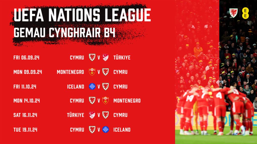 Cymru will face Iceland, Montenegro and Türkiye in Group B4 of this year’s UEFA Nations League tournament, with matches due to take place in September, October and November.