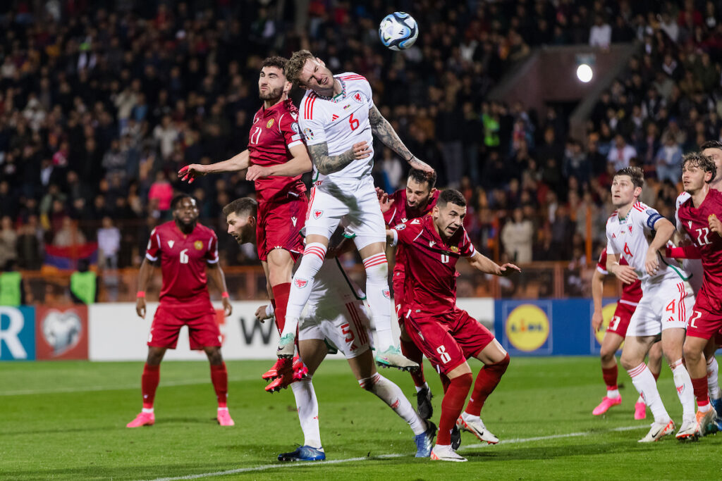 Nevertheless, Cymru were deserving of their equaliser before the half-time interval. A long throw from Connor Roberts towards the near post saw Joe Rodon challenge Nair Tiknizyan for the ball. Under Rodon’s pressure, Tiknizyan headed the ball into his own net.