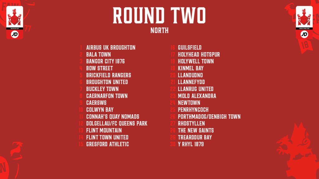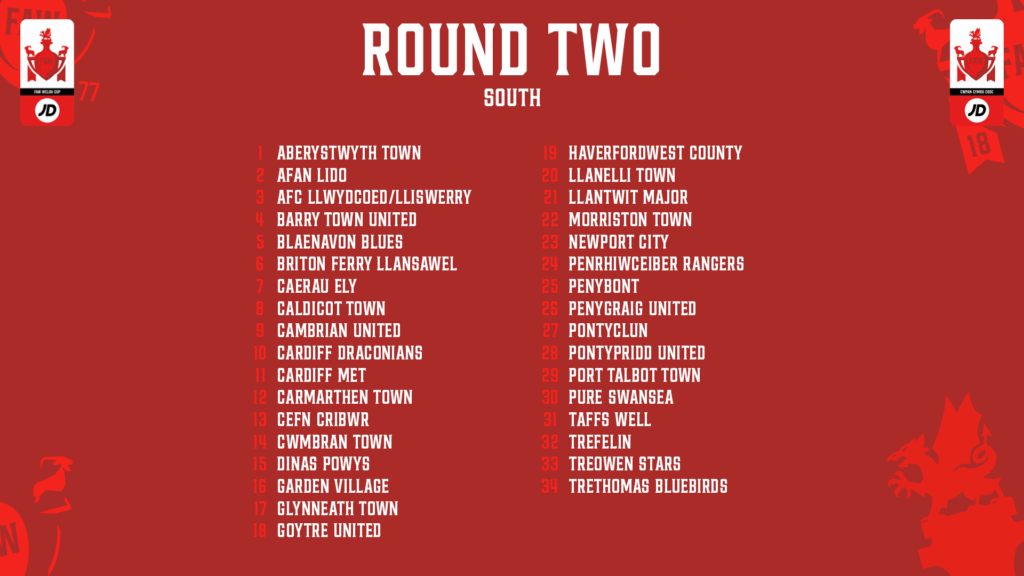 The JD Welsh Cup Round Two draw will be broadcast on RedWall+ at 8pm on Thursday 25 September.