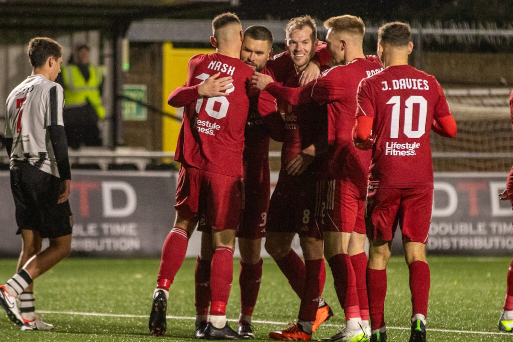 Four-time cup winner Aeron Edwards doubled the lead after finishing from Josh Ukek’s cross before Bala’s top scorer George Newell made it three by prodding home from Naim Arsan’s corner. Arsan then got on the scoresheet himself with a sublime 25-yard strike which found the top corner to round off an exhilarating first half from Colin Caton’s men.