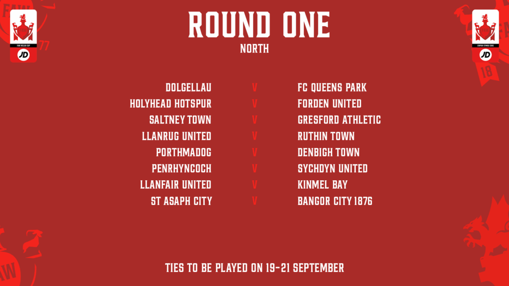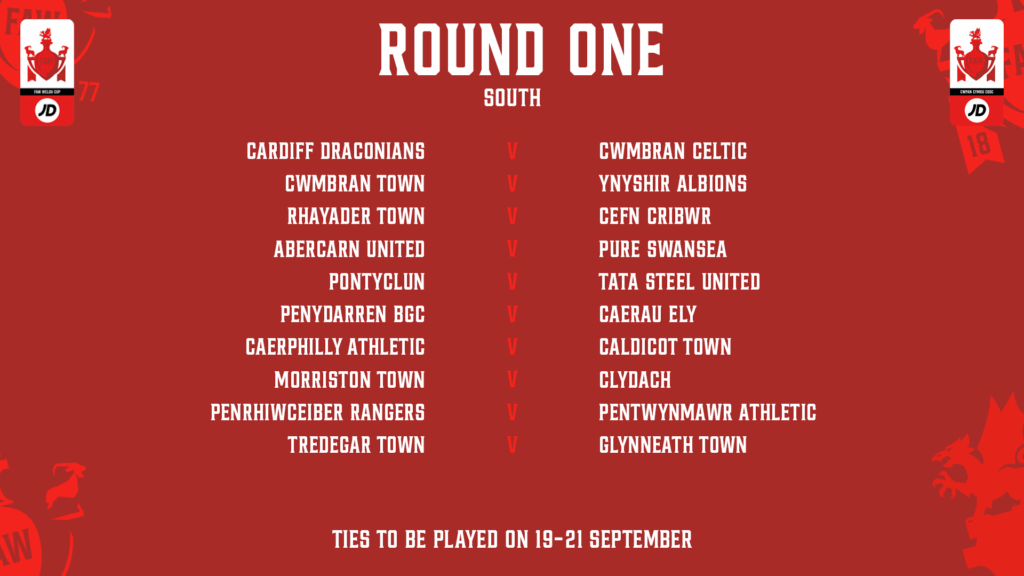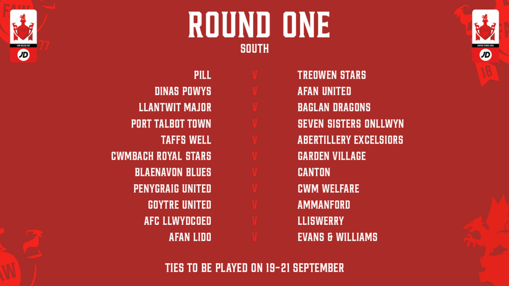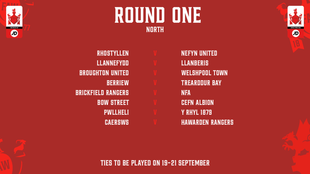 The draw has been made for the 2025/26 JD Welsh Cup round one draw, split into North and South sections.