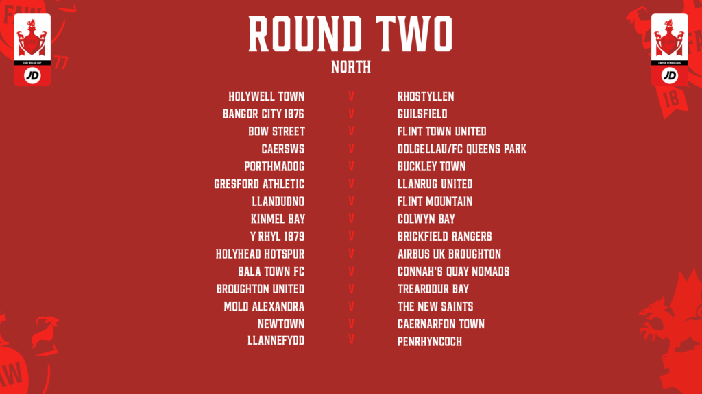 The draw has been made for Round Two of the JD Welsh Cup , split into North and South sections.