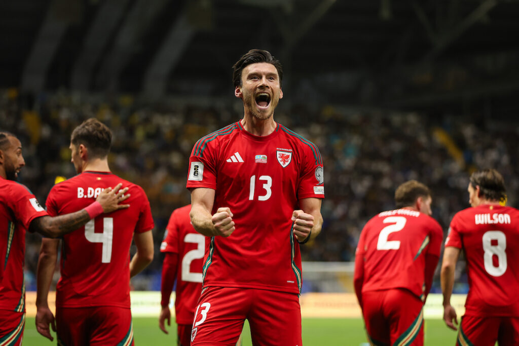 The impressive Galymzhan Kenzhebek called Karl Darlow into action on 19 minutes, but Cymru would take a deserved lead shortly after as Harry Wilson’s free kick was flicked towards goal by Liam Cullen. Goalkeeper Temirlan Anarbekov could only parry the ball into the path of Moore, and he made no mistake from close range on his 50th international appearance.