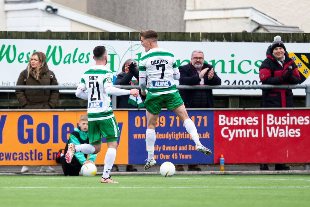 But the Saints boss was smiling just after the half-hour mark when his side took the lead through Daniels. It came from a quick breakaway from the JD Cymru Premier leaders as Smith sent Daniels through on goal, and the winger kept his composure before finishing beyond Absalom.