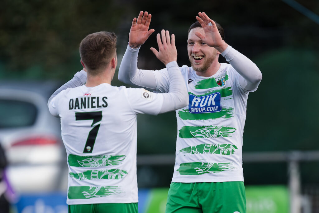 Brad Young got in on the act with a brace – first scoring from the penalty spot after he had been fouled in the box by Joe Evans, then latching onto Josh Daniels’ delivery and providing a cool finish through the legs of Alex Lang.