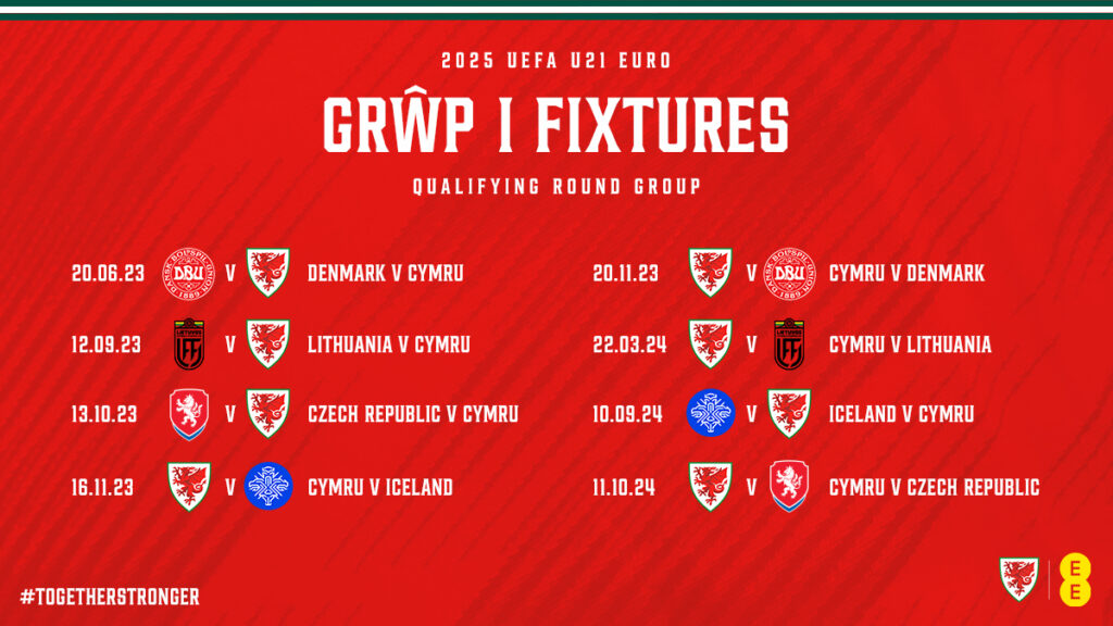 Cymru will welcome Lithuania to Wales on Friday 22 March 2024, then travel to Iceland on Tuesday 10 September before rounding off their group with a home clash against the Czech Republic on Friday 11 October.