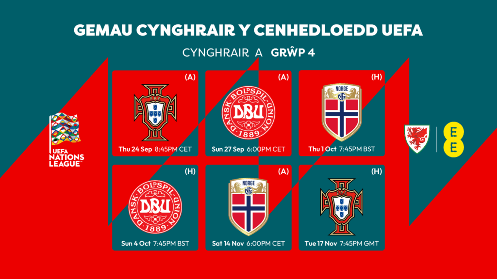 The November window will see Cymru travel to Norway on Saturday 14 November before ending the group with a home fixture against current UEFA Nations League winners Portugal on Tuesday 17 November.