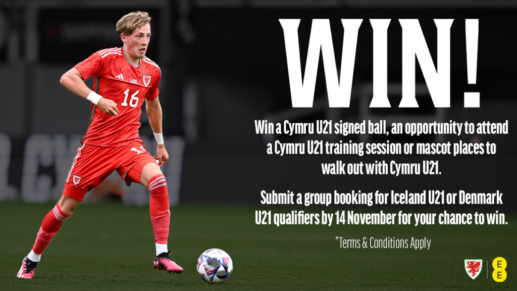 Those that enter their ticket application before Tuesday 14 November will be entered into a draw to win a ball signed by the Cymru U21 squad, an opportunity to attend a Cymru U21 training session or mascot places to walk out with Cymru U21 at a future home fixture.