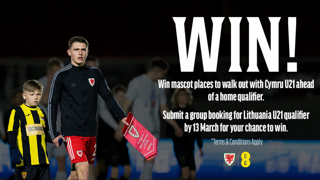 Those that enter their ticket application before Thursday 13 March will be entered into a draw to win mascot places to walk out with Cymru U21 at a home fixture.