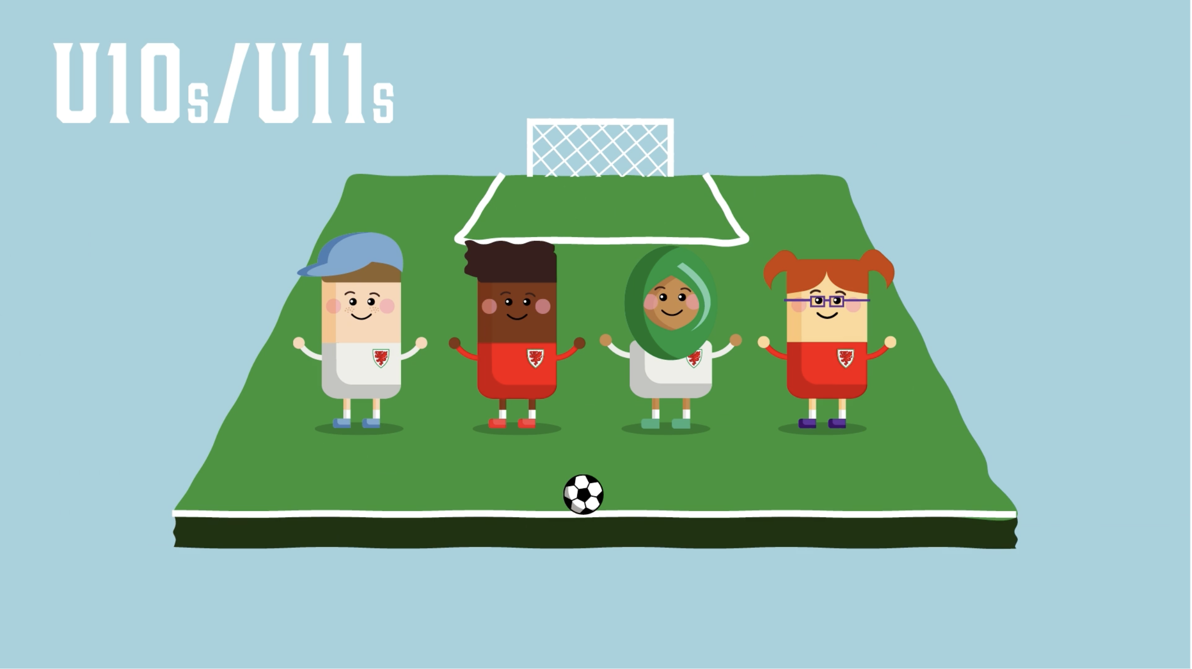 Where children learn to play and fall in love with football as they grow. Small-sided football gives children, across Wales, the opportunity to learn to play as a team, try their best and understand the dynamics of the beautiful game. As players get older, the pitches and balls grow in size to match their physical development.